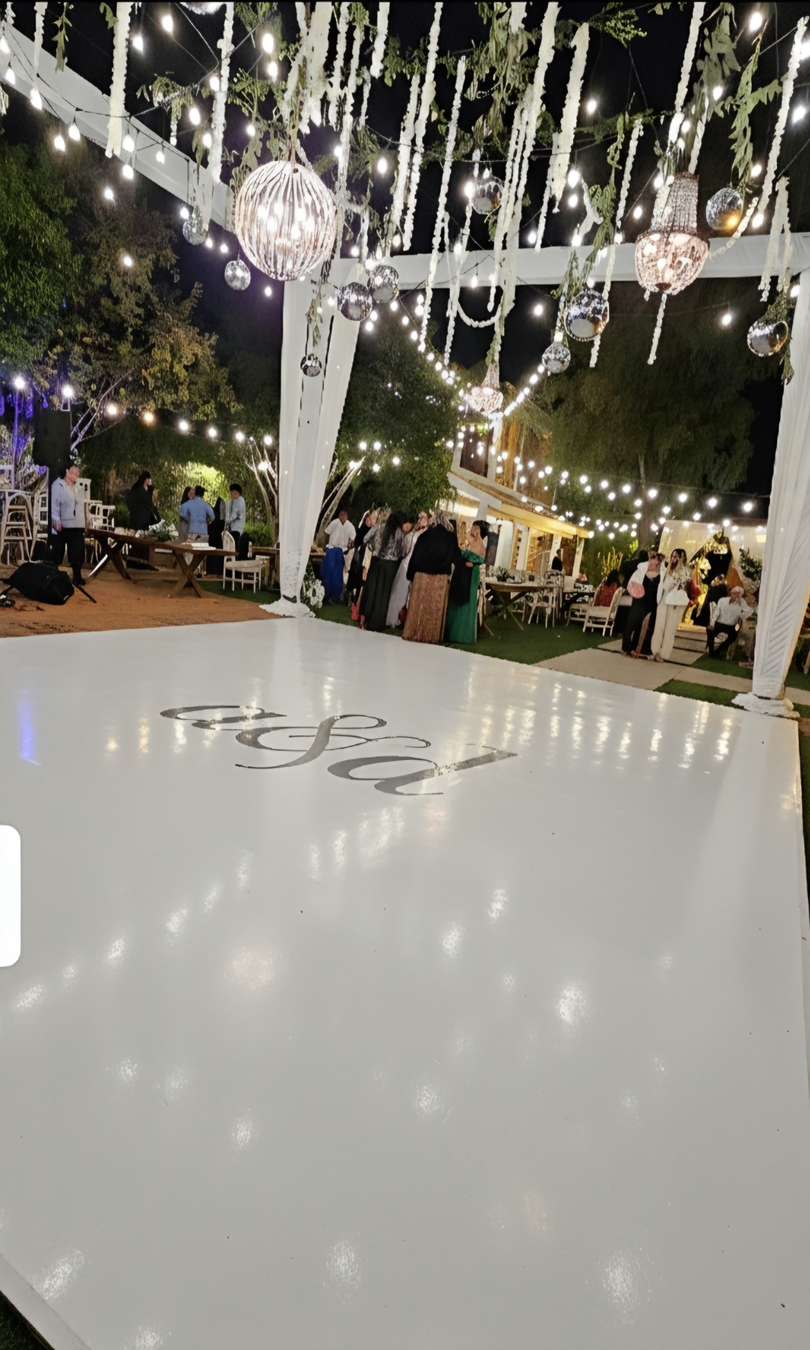 Pista de baile de 6x7 metros personalizada con lona, incluye: diseño, traslado e instalación.